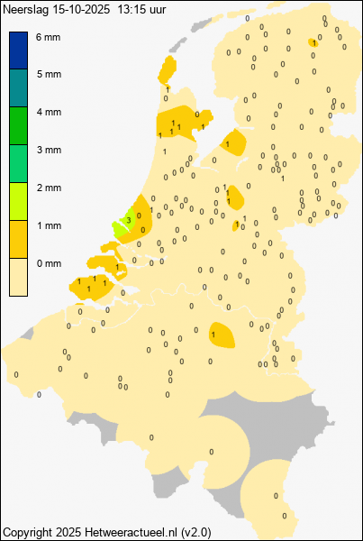 Op het tweede kaartje staat de neerslag die vandaag is gevallen tot en met het het tijdstip zoals vermeld in het kaartje.